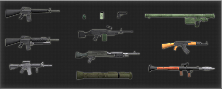 Multiple handheld weapons and object models